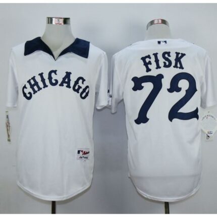 Men’s Chicago White Sox #72 Carlton Fisk White Cool Base Stitched Jersey