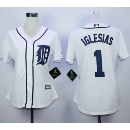 Tigers #1 Jose iglesias White Home Women’s Stitched MLB Jersey