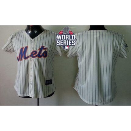 Mets Blank Cream(Blue Strip) W/2015 World Series Patch Women’s Fashion Stitched MLB Jersey