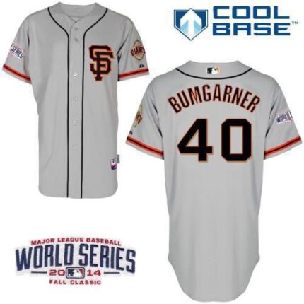 Giants #40 Madison Bumgarner Grey Road 2 Cool Base W/2014 World Series Patch Stitched MLB Jersey