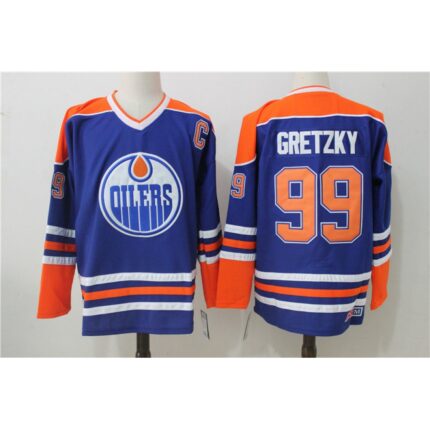 Men’s Edmonton Oilers #99 Wayne Gretzky Royal Throwback CCM Stitched NHL Jersey