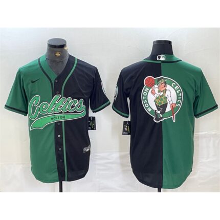 Men’s Boston Celtics Blank Green/Black Split Stitched Baseball Jersey