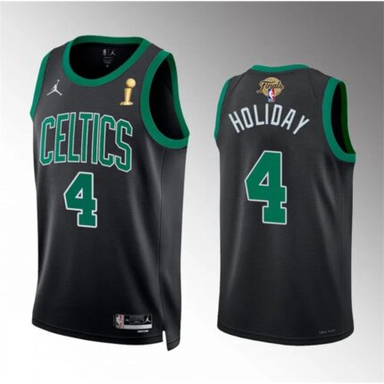 Men’s Boston Celtics #4 Jrue Holiday Black 2024 Finals Champions Statement Edition Stitched Basketball Jersey