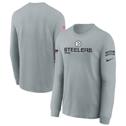 Youth Pittsburgh Steelers Nike Gray 2024 Salute To Service Long Sleeve T-Shirt
