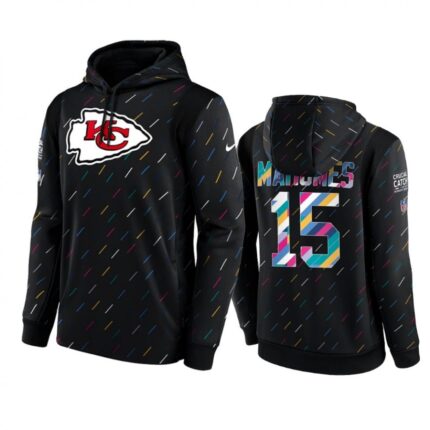 Men’s Kansas City Chiefs #15 Patrick Mahomes 2021 Charcoal Crucial Catch Therma Pullover Hoodie