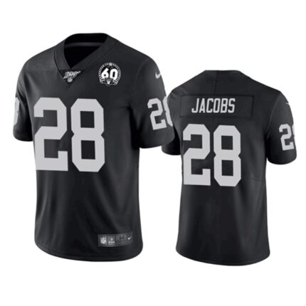 Men’s Oakland Raiders #28 Josh Jacobs White 100th Season With 60 Patch Vaper Limited Stitched NFL Jersey