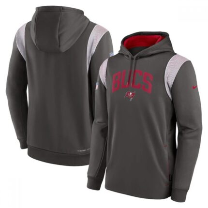 Men’s Tampa Bay Buccaneers Pewter Sideline Stack Performance Pullover Hoodie 001